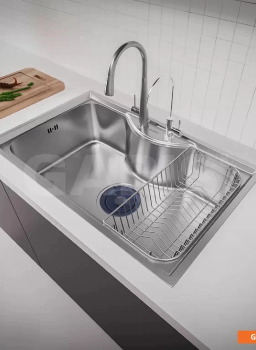 - Chậu rửa có viền mép và thân dày 1.2mm, giúp tăng độ cứng và độ bền cho sản phẩm. Viền mép và thân dày cũng giúp chống biến dạng và chịu được lực va đập mạnh, đảm bảo sự ổn định và độ an toàn khi sử dụng.