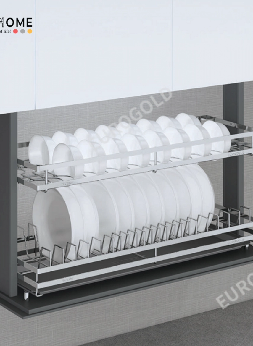 Kệ Chén Bát Nâng Hạ Điện Inox 304 Eurogold