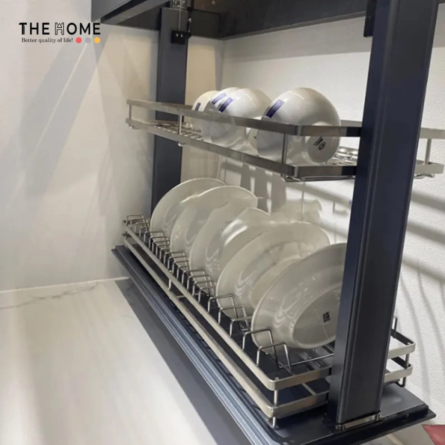 Cấu tạo 2 tầng với 2 chức năng: tầng trên úp bát, tầng dưới úp đĩa. Các thanh nan được cải tiến trong thiết kế và kích thước được đo lường chuẩn xác. Giúp cho bát đĩa luôn được úp thẳng đứng, không bị xô lệch hay bị rơi khỏi giá trong quá trình nâng lên/ hạ xuống từ tủ bếp trên.