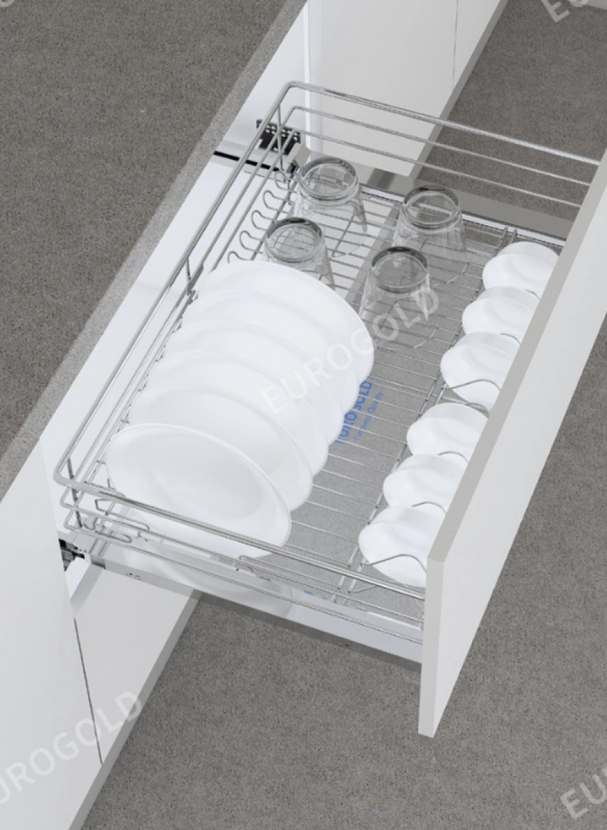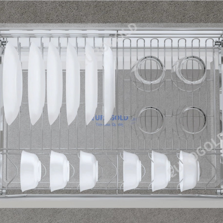 Kệ chén bát xoong nồi đa năng inox 304 nan tròn Eurogold – giải pháp lưu trữ thông minh, bền đẹp cho gian bếp hiện đại.