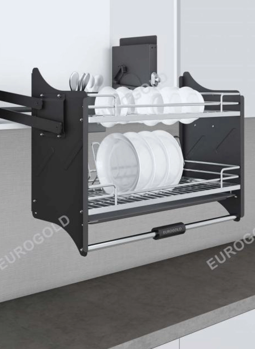 Được thiết kế từ công nghệ chuẩn Châu Âu, Giá bát dĩa nâng hạ Euro Inox 304 được lòng rất nhiều bà nội trợ bởi kiểu dáng hiện đại, mang lại cảm giác sang trọng cho không gian bếp.