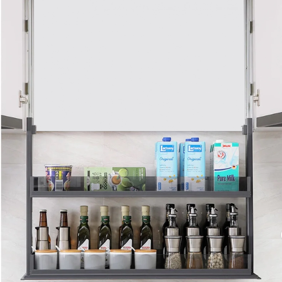 Kệ gia vị nâng hạ điện rổ nhôm kính Eurogold