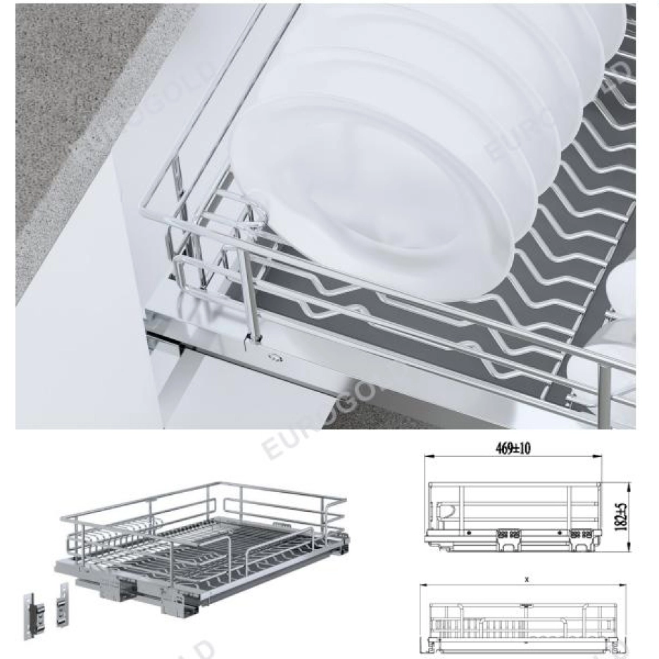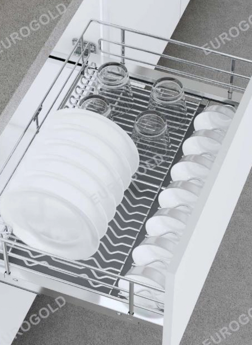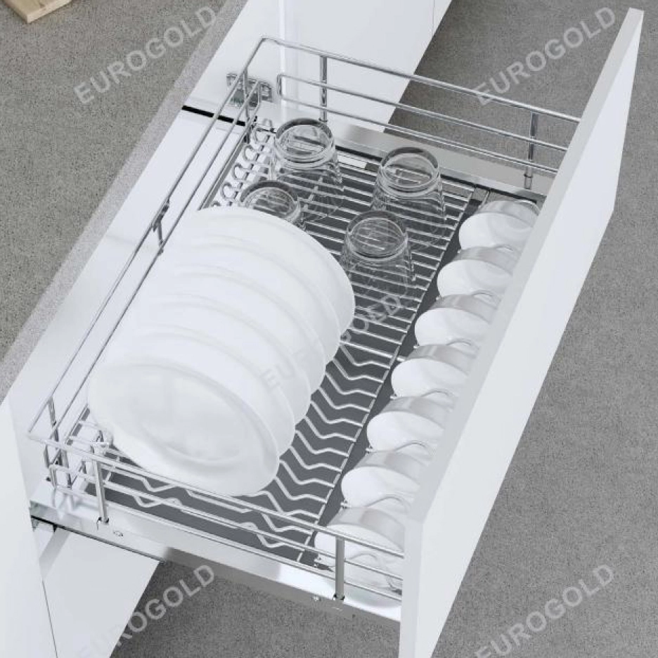 – Hệ thống ray có cấu tạo chắc chắn, chịu được trọng tải lớn lên tới 20kg giúp bạn thoải mái để bát, đĩa và xoong nồi.