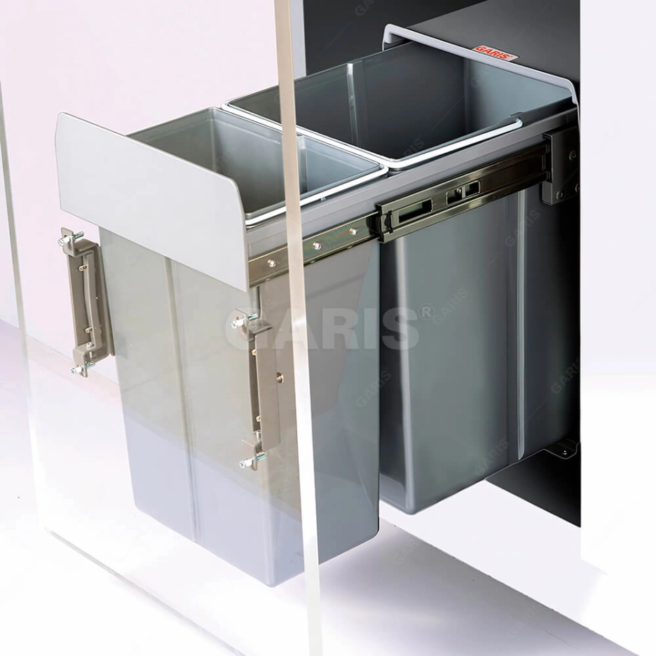 Lựa chọn thùng rác đôi, (1*10L-1*20L) cánh kéo được lắp đặt trực tiếp trong khoang tủ sẽ là sự lựa chọn tuyệt vời cho gia đình bạn. Dung tích chứa của thùng rác không quá lớn để rác sẽ không bị lưu cữu lâu ngày khiến vi khuẩn có cơ hội sinh sôi, thùng rác cao cấp, (1*10L-1*20L) có những ưu điểm sau: